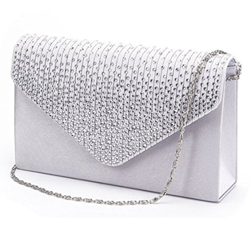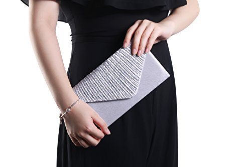 Clorislove, borsa a tracolla da donna con strass smerigliati, in stile classico e di classe, a pieghe, pochette da sera Silver Small