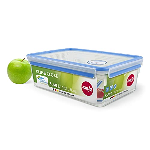 Emsa Clip & Close - 508547 Contenitore per alimenti rettangolare con coperchio, 5.4 litri, Trasparente/Blu