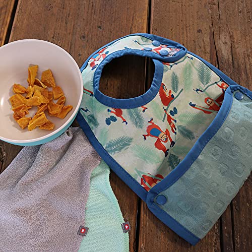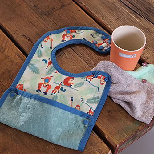 Close 2 Baby Bib Close Pop-in - Bavaglino impermeabile per bambini, 6 mesi, antimacchia, facile da pulire, con contenitore di raccolta arancione Arancione utan. Taglia unica