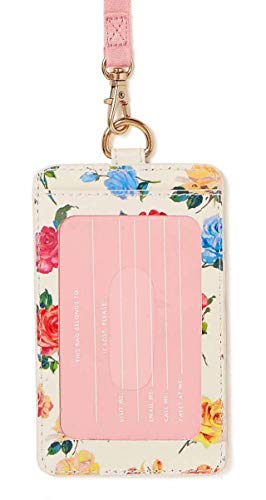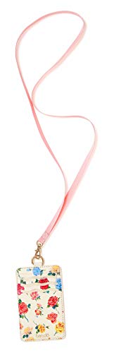 Design durevole: il porta documenti è realizzato in una resistente pelle vegana con un design floreale di Helen Dealtry e un cordino staccabile che misura 45,7 cm. da indossare facilmente intorno al collo