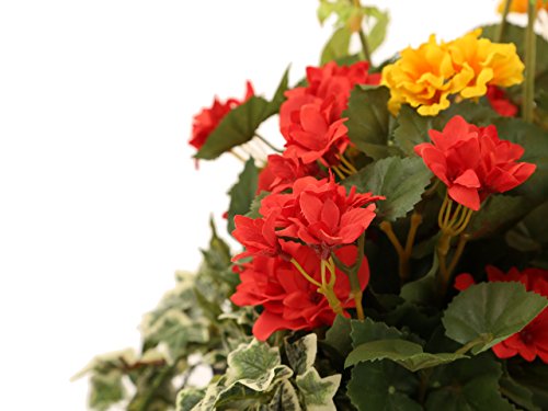 Closer to Nature Artificiale Rosso Begonia e Giallo Geranio Display in Una Grigio Grafite 70 cm fioriera - Artificial Bedding Plug Impianti e Gamma Display
