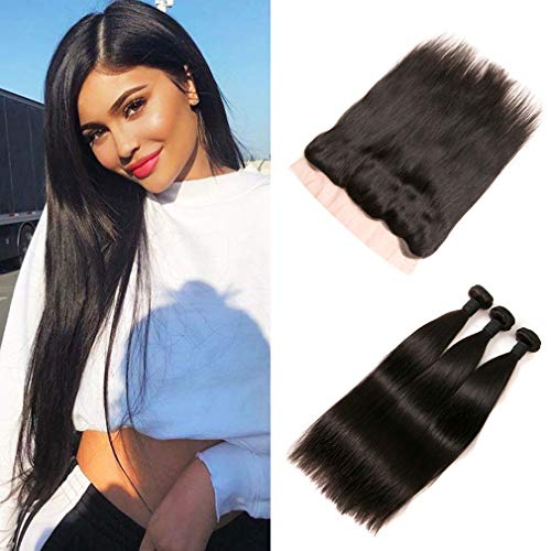 Closure Human Hair Brazilian Straight Hair Lace Frontal 3 Bundles Free Part with Baby Hair Natural Black Brown 18 20 22 +16 Frontal