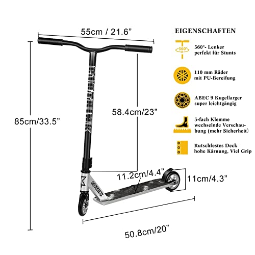 Clothink Stunt Scooter robusto Pro Stunt Scooter con 110 mm ABEC 9 cuscinetti, Fun Scooter, Kick Scooter, Tricks Scooter, Freestyle Scooter