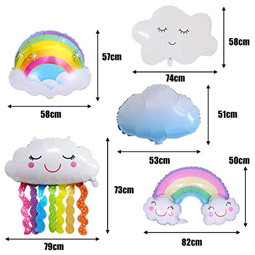 Cloud Palloncino, NALCY 6 Pcs Tassel Cloud Palloncini, Sorridente Cloud Foil Palloncino, Bella Elio Arcobaleno Cloud Palloncino, Doccia Decor Bambini Festa di Compleanno