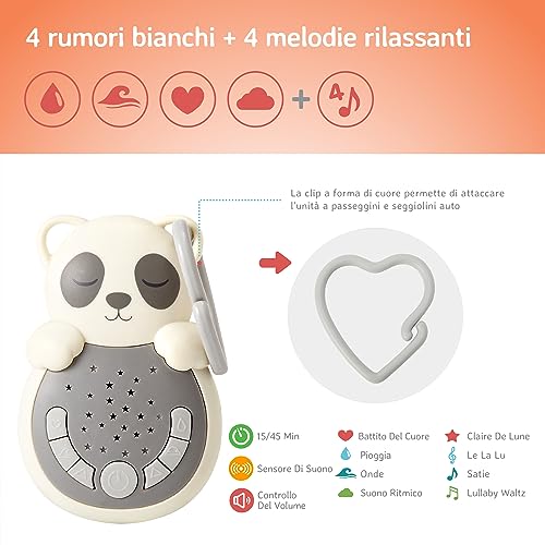 Cloud b con suono e luce calmante da viaggio | 4 rumori bianchi e 4 ninna nanne | Sensore intelligente di risveglio | Sweet Dreamz Panda