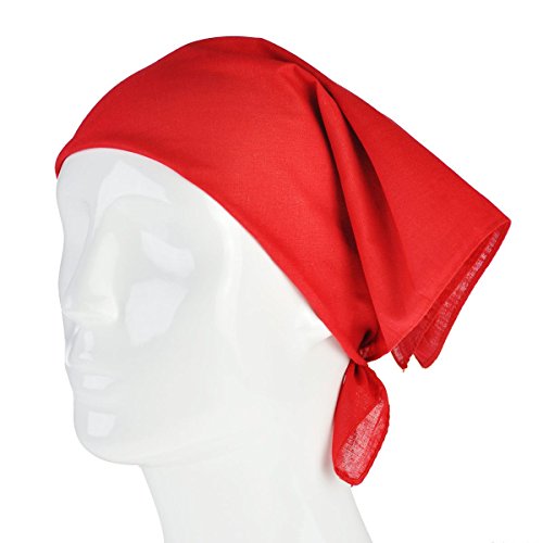 Cloud9basic - Bandana unisex, in tinta unita, 100% cotone, per testa e collo, ottima come sciarpa, dimensioni 53 x 53 cm Plain-Red Etichettalia unica