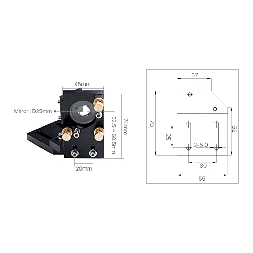 Testa laser CO2 e 2 tipi di supporti per specchi (il primo e il secondo) che sono fatti di alluminio