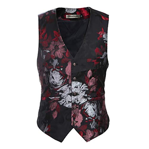 Cloudstyle, completo elegante da uomo, composto da giacca con revers a un solo bottone e stampa floreale, gilet e pantaloni, set da 3 pezzi, taglio slim fit Red S