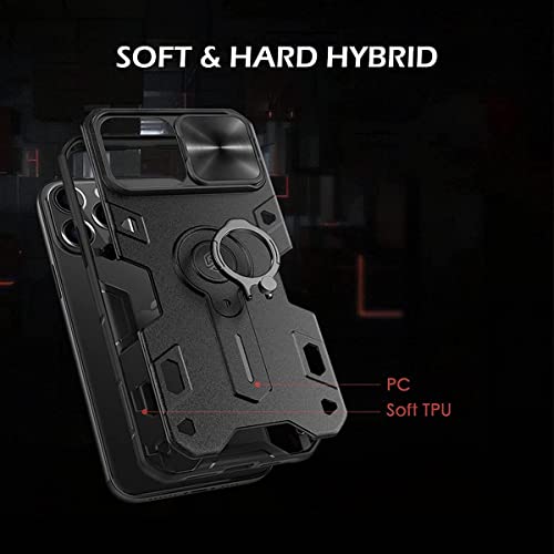 CloudValley - Cover Compatibile con iPhone 13 Pro Max con Custodia per Fotocamera e Cavalletto, Case per Resistente Agli Urti e Protezione Paraurti - Nero