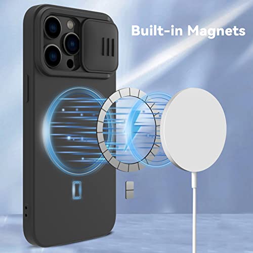 CloudValley Cover Magnetica per iPhone 14 Pro Max MagSafe, Custodia in Silicone Ibrida con Protezione Scorrevole per Fotocamera, Antiurto Militare Anti-Graffio per 14 Pro Max 6.7'', (Nero)