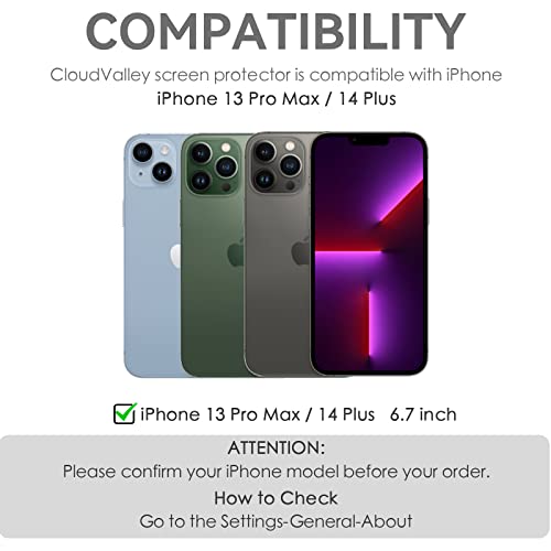 CloudValley Pellicola protettiva per schermo con copertura frontale per iPhone 13 Pro Max 6,7 pollici (2021), pellicola in vetro temperato HD + copriobiettivo spia