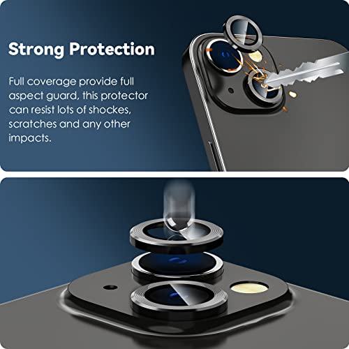 CloudValley Protezione per fotocamera compatibile con iPhone 14/iPhone 14 Plus, vetro per fotocamera [HD trasparente, durezza 9H, pellicola protettiva in alluminio, Nero