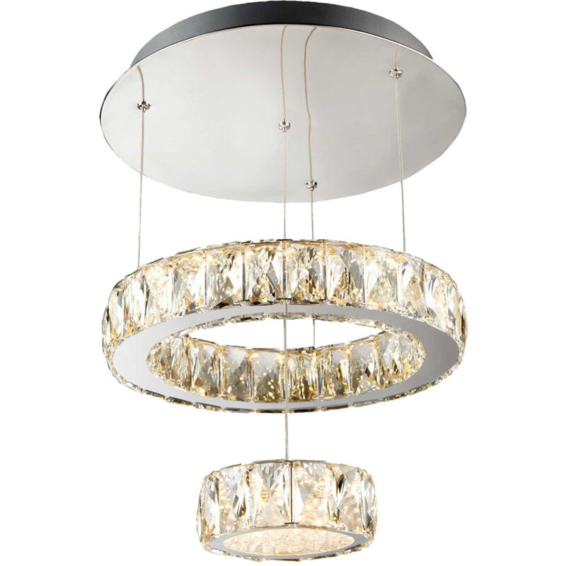 Searchlight Clover - Plafoniera LED integrata da semi incasso cromata | Finitura: Chrome | Materiale: vetro | Classificazione IP: IP20 | Altezza (cm): 70 | Diametro (cm): 35 | Numero di luci: 144 | Tipo di lampada: LED INTEGRATO | Kelvin: 4000 | Lumen: 2760 | Potenza (max): 28 | Lampadina inclusa: sì