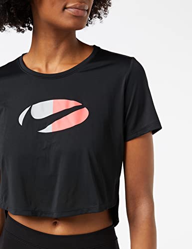 Nike W NK One DF Clrblk SS Std CRP T-Shirt, Black/Magic Ember/lt Smoke Grey/(White), M Donna