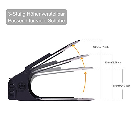 CLTech 10 pezzi Scarpe Scarpa per impilare i regolabile Organizzatore di plastica economia di spazio Scarpiera supporto, Scarpiera per mobili (Plastica Nero)