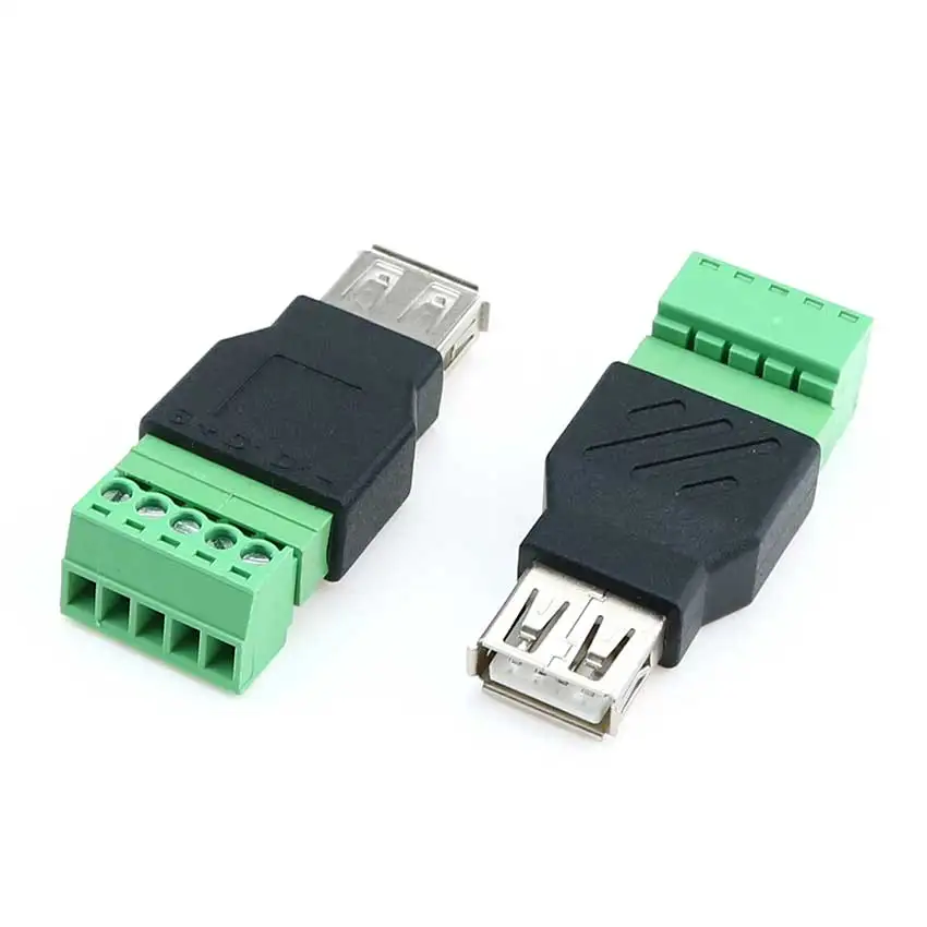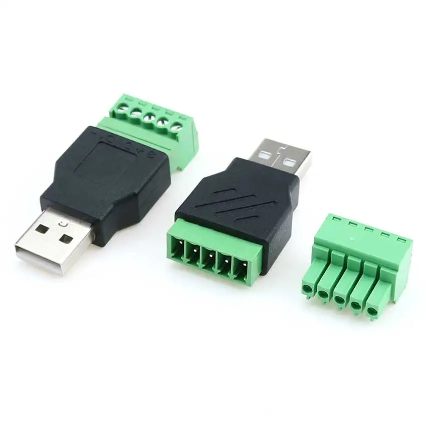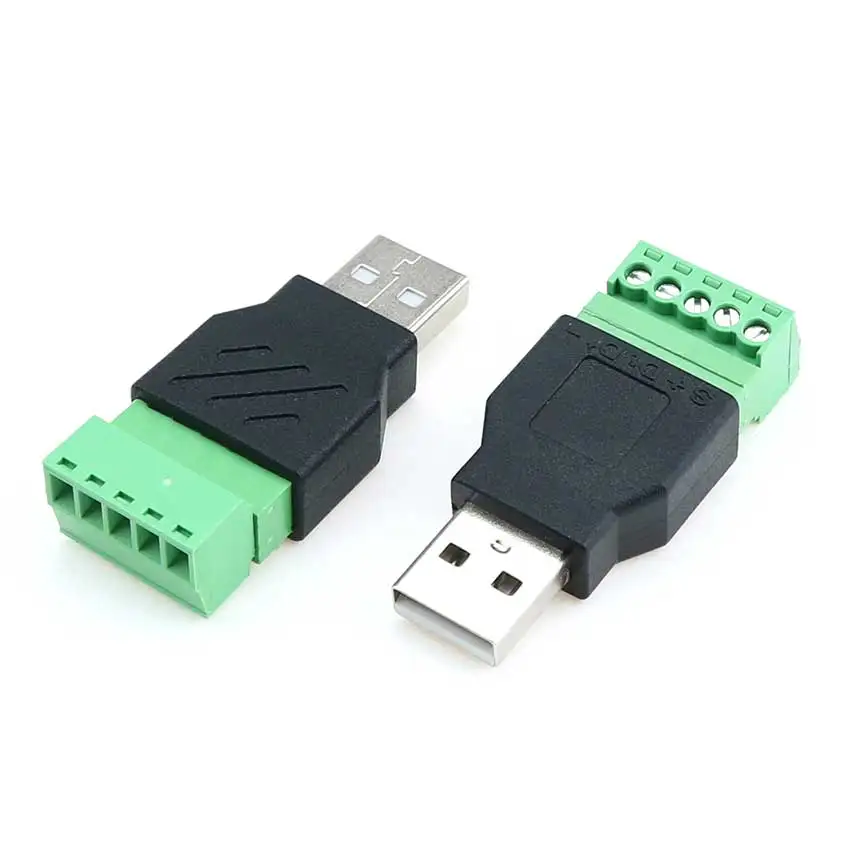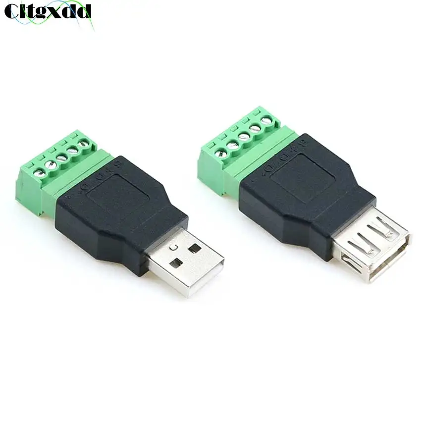 Cltgxdd 1PCS USB 2.0 Type A Male / Female to 5 Pin Screw w/ Shield Terminal Plug Adapter Connector