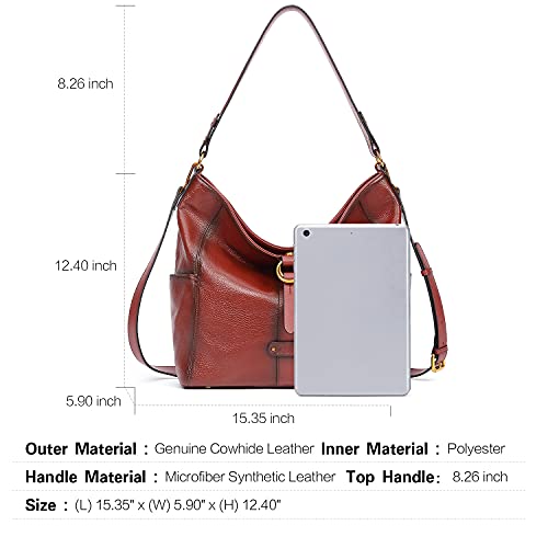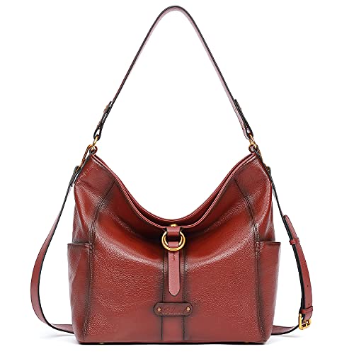 CLUCI Borsa da donna Tashe a tracolla grande in vera pelle morbida da donna, stile vintage, Zweifarbig Wein Rot, Large