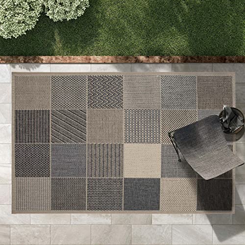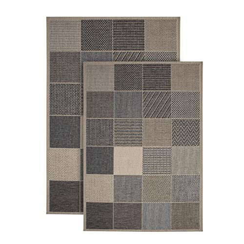 Clyde - Tappeto estivo resistente alle intemperie, tessuto piatto robusto, adatto per interni e esterni, per terrazze e balconi, design moderno, modello Branch con motivo a quadri, 160 x 230 cm