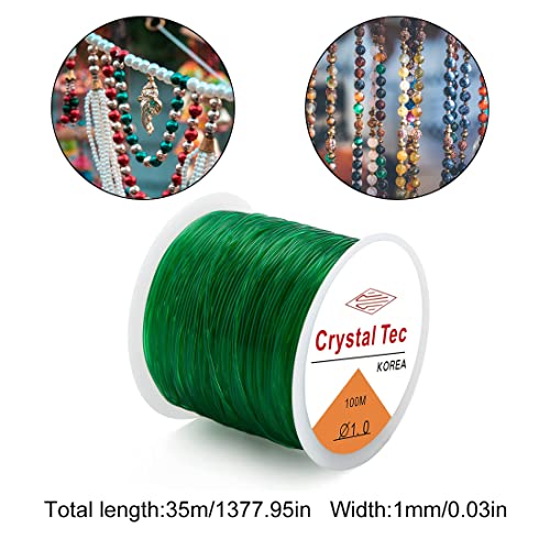 Clyhon 2pcs Filo Elastico per Braccialetti, 1mm Filo Nylon Trasparente per Appendere Decorazioni, Filo per Perline Resistente e Durevole per Collane(verde)