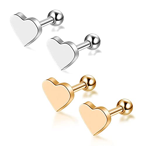 Clyhon Orecchini a bottone da donna a forma di cuore Argento sterling rodiato Orecchini a bottone da donna a forma di cuore Argento lucido 925 Orecchini a bottone in acciaio inossidabile 925