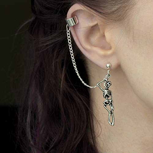 Clyhon Orecchini a catena con teschio punk con maniche per le orecchie Orecchini a scheletro con rivetti con nappe Gioielli di moda gotici per feste Discoteca Halloween Streetwear Donna Uomo Regali