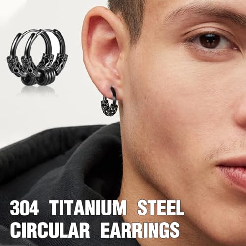 Clyhon Orecchini vPunk Hip Hop a Cerchio Acciaio Inossidabile Medico Vintage Cartilagine Traforata Gioielli Adatti per Uomini e Donne Ipoallergenico Nero
