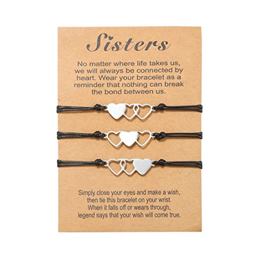 Clyhon 3 pezzi Sorelle Bracciale Amicizia Bracciale Donna Cuore per Lei Amiche Mamma Sorelle Amica Compleanno Natale Anniversario Festa Della Mamma Gioielli Donna Regalo Idea