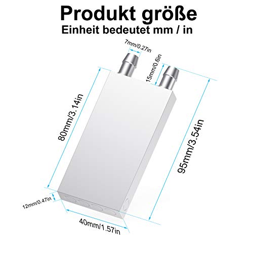 Dimensioni del blocco di raffreddamento ad acqua: 40 x 80 x 12 mm. Materiale: lega di alluminio.