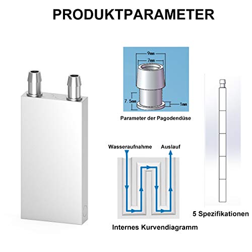 La bocchetta pagoda ha un diametro esterno minimo di 7 mm e può essere collegata a un tubo dell'acqua con un diametro interno da 7 a 8 mm.