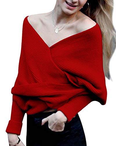 CMTOP Sciarpa Top in Maglia da Donna Comodo Sweater Maglione Cardigan Donna Maglione Donna v-collo Donna Pullover Maniche Lunghe Invernale