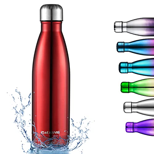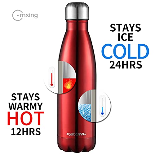 CMXING Bottiglia Acqua, 500ml/ 750ml Doppia Parete Acciaio Inox Sottovuoto Coibentato Bottiglia Termica, Sport Borracce Thermos (Rosso, 750ML)