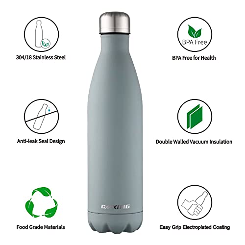 CMXING Bottiglia Acqua, 500ml/ 750ml Doppia Parete Acciaio Inox Sottovuoto Coibentato Bottiglia Termica, Sport Borracce Thermos (Grigio,750ML)
