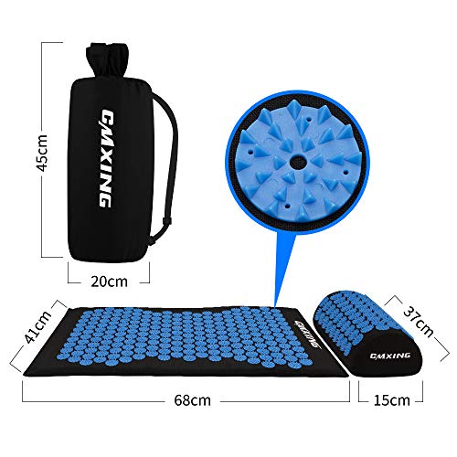 Cmxing Set Tappetino Agopressione, Cuscino per Digitopressione Massaggio Agopuntura Set di Tappetini da Yoga, Include Tappetino +Cuscino+Borsa, Rilassarsi e Alleviare Lo Stress (Blu + nero)