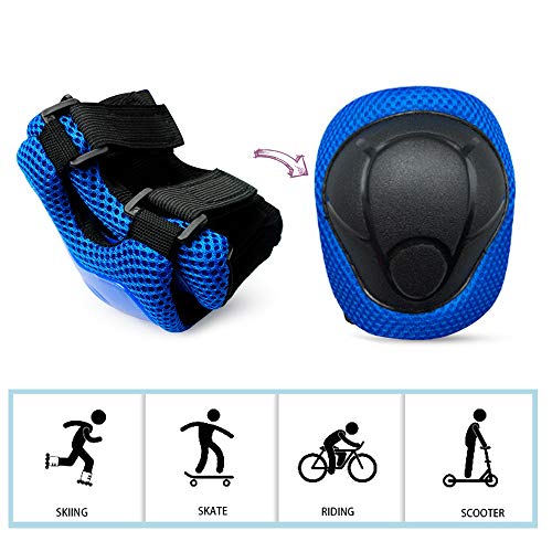 CMYKZONE Set Casco Per Skateboard Per Bambini, Roller/Pattinaggio/Scooter/Casco Da Ciclismo, Ginocchiere E Gomiti, Comodo E Resistente, Per Skateboard, Scooter, Sport Di Montagna Ecc (Blu)