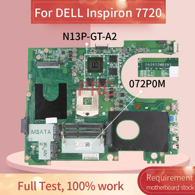 CN-072P0M 072P0M For DELL Inspiron 7720 Laptop motherboard DA0R09MB6H1 N13P-GT-A2 DDR3 Notebook Mainboard