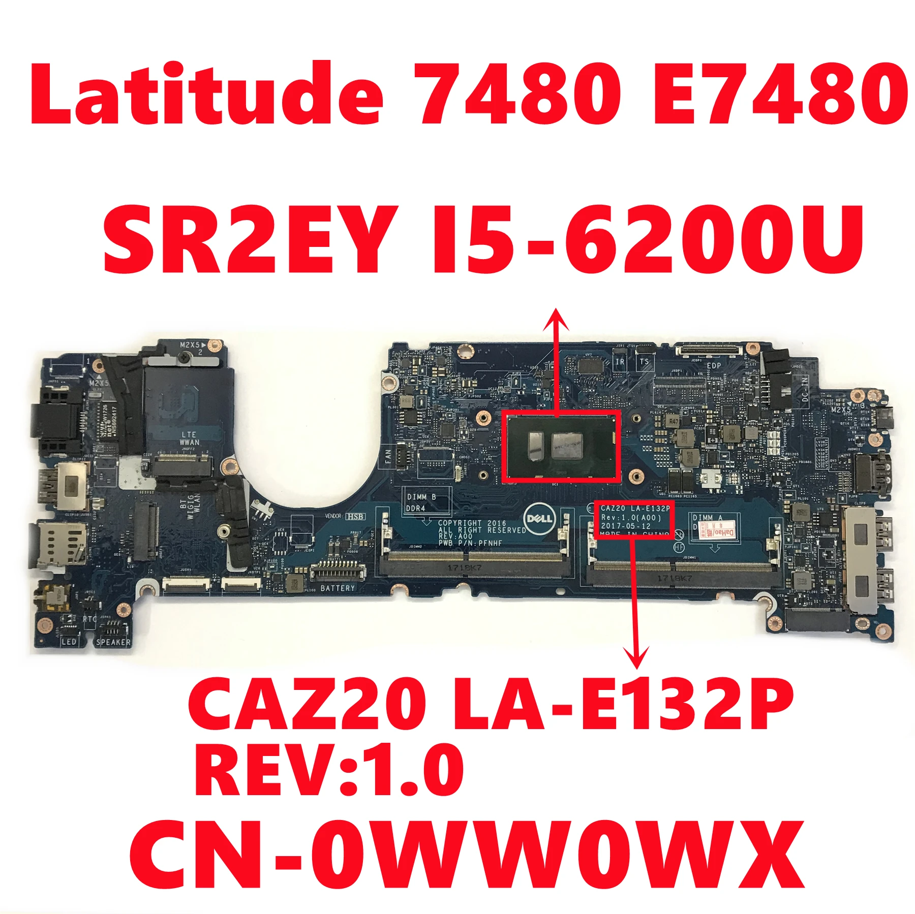CN-0WW0WX 0WW0WX WW0WX For Dell Latitude 7480 E7480 Laptop Motherboard CAZ20 LA-E132P REV:1.0 W/ SR2EY I5-6200U Fully Tested OK