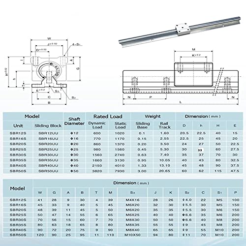 SBR12 LINEAR RAIL: questo set di guide lineari contiene 2 pezzi da 1500 mm (59,05 pollici) di guida di scorrimento SBR12 albero e 4 pezzi di blocco di scorrimento SBR12UU secondo lo standard industriale + maniglia a morsetto.