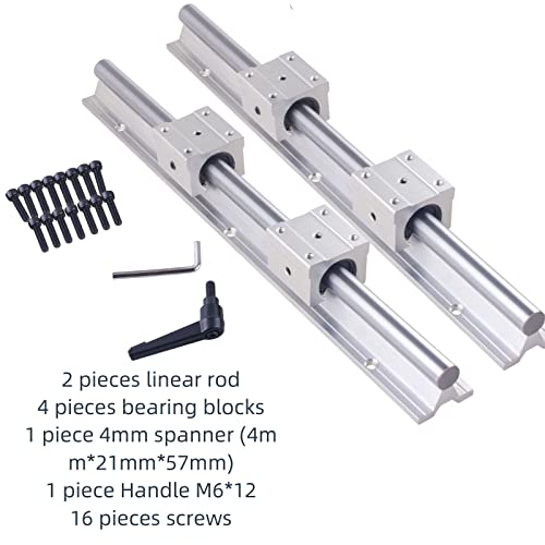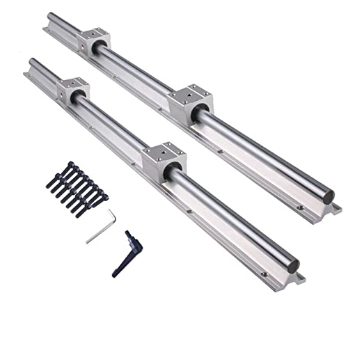 CNCMARKET Linear Rail CNC Parts 2 pezzi SBR12-600 mm Linear Slide Rail Shaft + 4 pezzi SBR12UU Motion Slide Rail Kit di cuscinetti per mulini, torni, router CNC fai da te