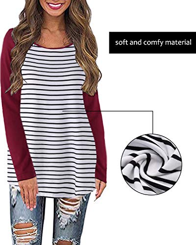 T-shirt casual da donna: le magliette sono piumate con diversi colori e strisce, vestibilità larga, maniche lunghe, girocollo e casual, adatte a tutti.
