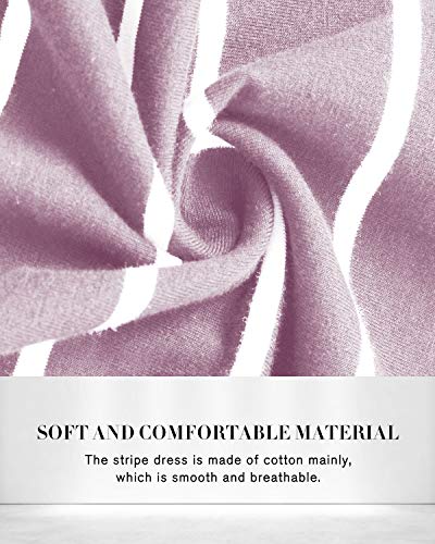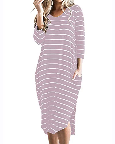 CNFIO - Vestito/t-shirt oversize da donna, stile boho, a righe, autunnale, maniche a 3/4, con tasche rosa S