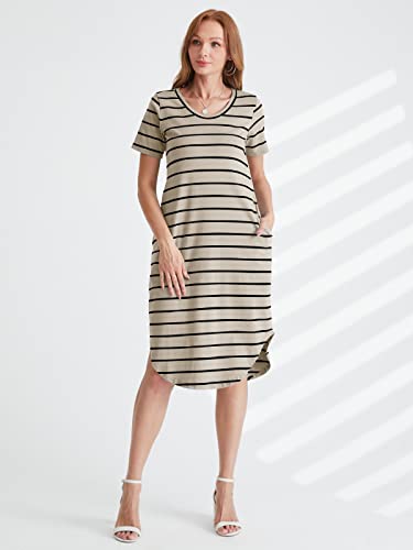 CNFIO - Vestito/t-shirt oversize da donna, stile boho, a righe, autunnale, maniche a 3/4, con tasche L-kaki XL