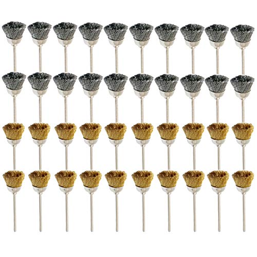 Cnmade 3 mm acciaio spazzola ruota filo di ottone spazzole di pulizia di lucidatura, attacco per smerigliatrice Dremel Rotary utensili 40 pz