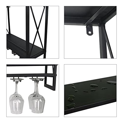 CNNINGYI Portabottiglie a parete, portabottiglie multiuso in metallo nero da 24,2" con supporto in vetro, portabottiglie a parete a 2 livelli, portabottiglie in vetro