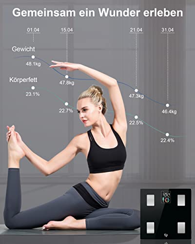 Cnstorm Bilancia per il grasso corporeo Bluetooth, bilancia pesapersone digitale con app, bilancia intelligente per analisi del corpo, massa muscolare, BMI, nero