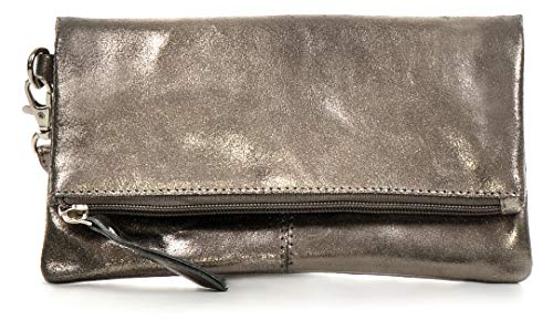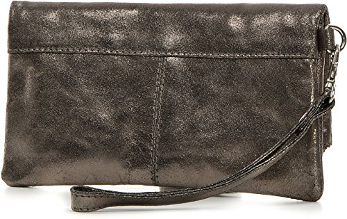 CNTMP, Borsa da Donna, Clutch, Borsa a Mano, Pochette, Borsetta da Sera, Effetto Metallico, Con Tasca in Pelle, Colore Antracite, 21x11x2,5cm (L x H x P)