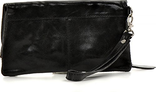 CNTMP, Borsa da Donna, Clutch, Borsa a Mano, Pochette, Borsetta da Sera, Effetto Metallico, Con Tasca in Pelle, Colore Nero, 21x11x2,5cm (L x H x P)
