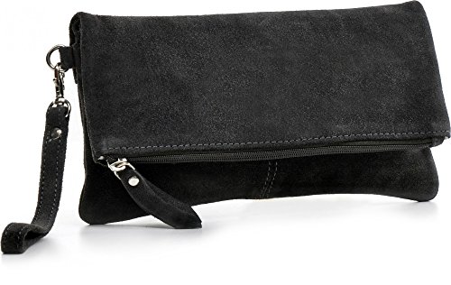 CNTMP, Borsa da Donna, Clutch, Pochette, Borsetta da Sera, In Pelle Scamosciata, Con Tasca in Pelle (SMALL), 21x12x2,5cm (L x H x P)