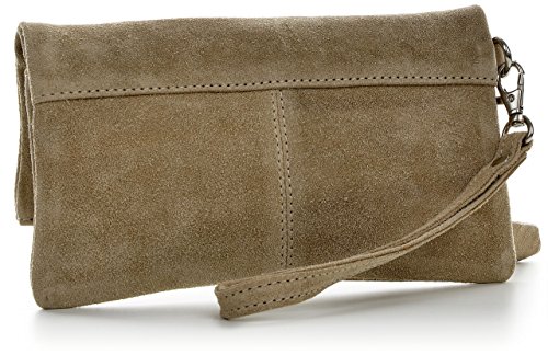 CNTMP, Borsa da Donna, Clutch, Pochette, Borsetta da Sera, In Pelle Scamosciata, Con Tasca in Pelle (SMALL, Colore Taupe), 21x12x2,5cm (L x H x P)