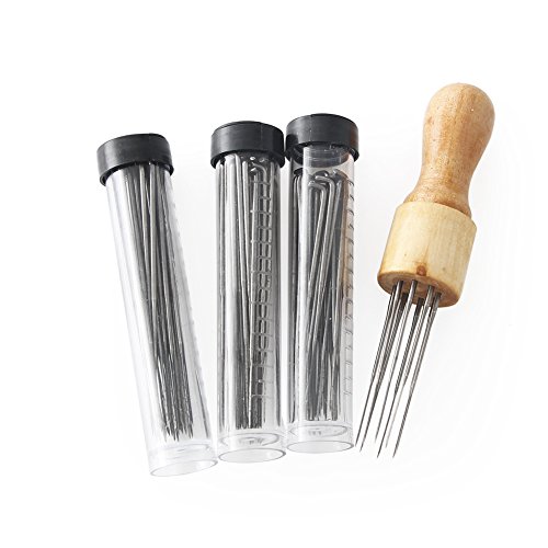 Co-link DIY Eight l'attrezzo degli Aghi Craft Lana Feltro Punto punzone con Manico in Legno massello +120 Pieces Triangolari Felting Aghi