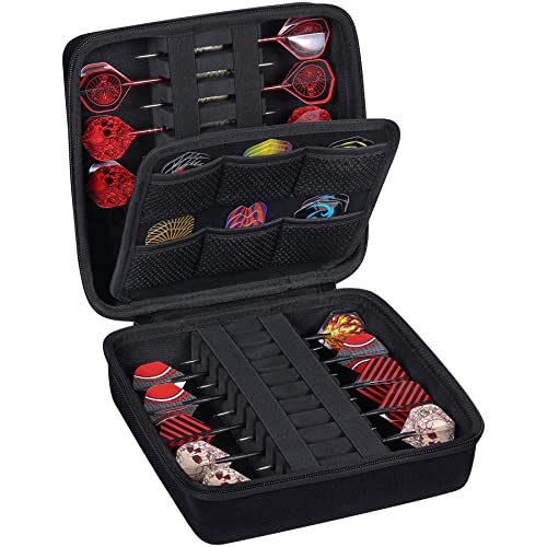 Protezione eccellente: La custodia di trasporto del dardo è di tre livelli di stoccaggio e può contenere 20 pezzi completi di freccette.Internal Numerosi porta tasche in rete per alberi di freccette, dardo O'Rings, dardo voli, punte di freccette e altri accessori.Caso di trasporto Dart meglio proteggere freccette e accessori.